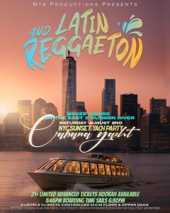 - Website: https://www.eventbrite.com/e/latin-reggaeton-sunset-yacht-party-saturday-august-2nd-nyc-tickets-1485129655779
