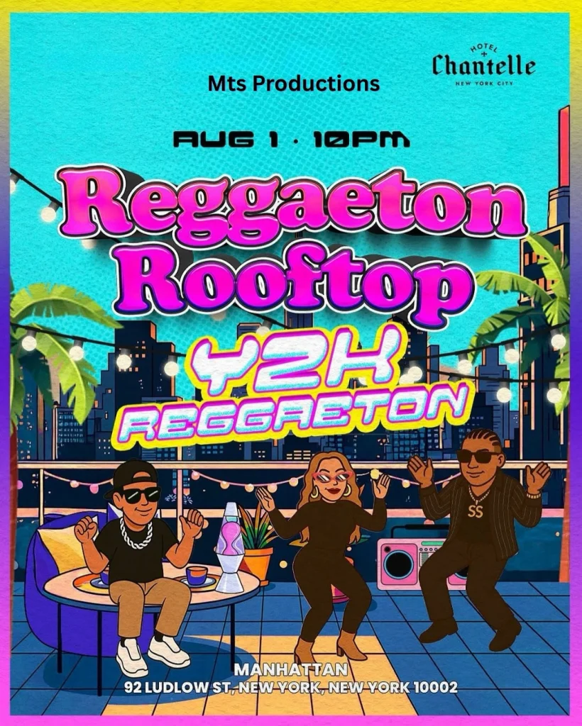 NYC’s favorite rooftop Reggaeton party is back this Friday, August 1st — and it’s going to be another legendary night of Latin beats and sky-high vibes! Join us at Hotel Chantelle, one of the most iconic rooftop clubs in NYC, and dance the night away under the stars to the best Reggaeton, Dembow, Latin Trap, and more.