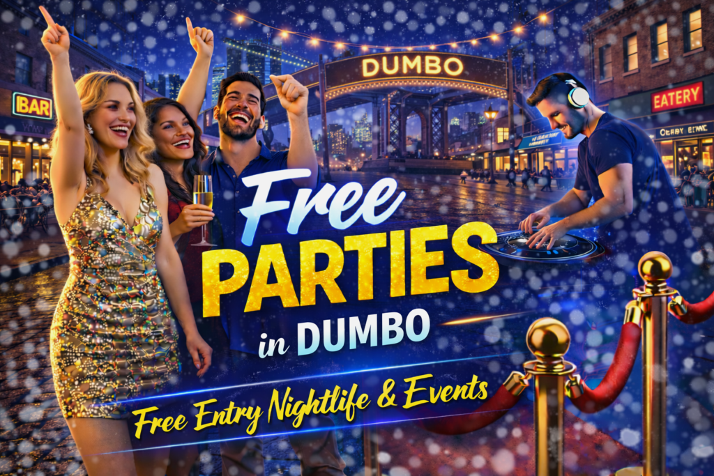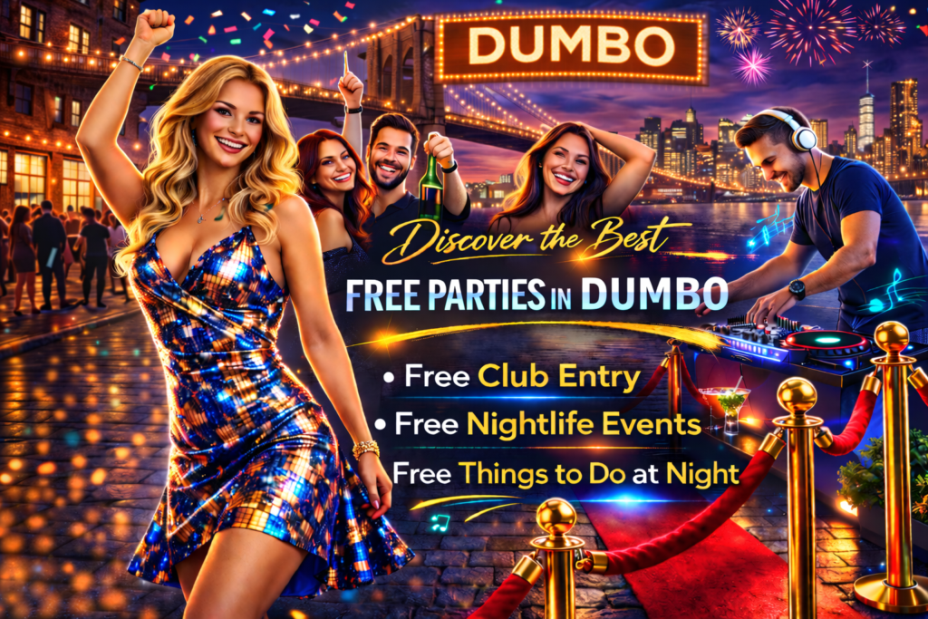 DUMBO (Down Under the Manhattan Bridge Overpass) offers one of the most visually stunning nightlife backdrops in NYC, with cobblestone streets, waterfront views, and skyline scenery that turns any night out into an experience. While the neighborhood is known for galleries and daytime tourism, you can regularly find free parties in DUMBO when you plan ahead. From RSVP guestlists to early-entry perks and celebration-driven gatherings, DUMBO offers opportunities to enjoy nightlife without paying a cover, and many guests discover weekly access through Tik Tok or Instagram where upcoming events and guestlist details are shared.