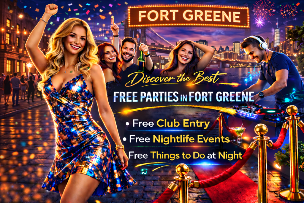 Fort Greene combines historic Brooklyn charm with a vibrant arts and culture scene, creating a nightlife atmosphere that feels both relaxed and energetic. With its theaters, lounges, and social gathering spots, the neighborhood offers a welcoming environment for a night out. You can regularly find free parties in Fort Greene when you plan ahead, using RSVP guestlists and early-entry perks to enjoy nightlife without paying a cover. Many guests discover weekly access through Tik Tok or Instagram where upcoming events and guestlist details are shared.