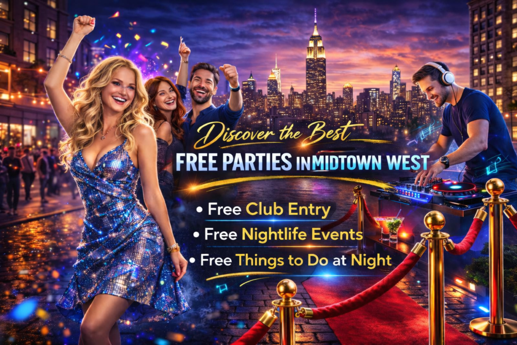 Midtown West is one of Manhattan’s busiest after-dark zones, filled with lounges, social bars, and DJ-driven venues that attract both locals and visitors. Despite the high foot traffic and central location, it’s still very possible to enjoy free parties in Midtown West if you plan ahead. From RSVP guestlists to early-entry perks and celebration-driven gatherings, the neighborhood offers frequent opportunities to go out without paying a cover. Many guests hear about weekly access first through Tik Tok and Instagram, where event announcements and entry details are shared.