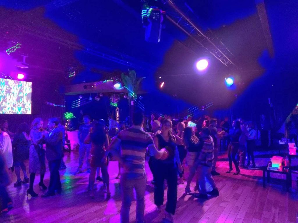 Arrive by 8:00 PM for lessons and a good spot. Wear comfortable shoes and follow the tropical glam dress code. VIP Table Packages suit groups. Check Instagram for updates, and the central location aids access.