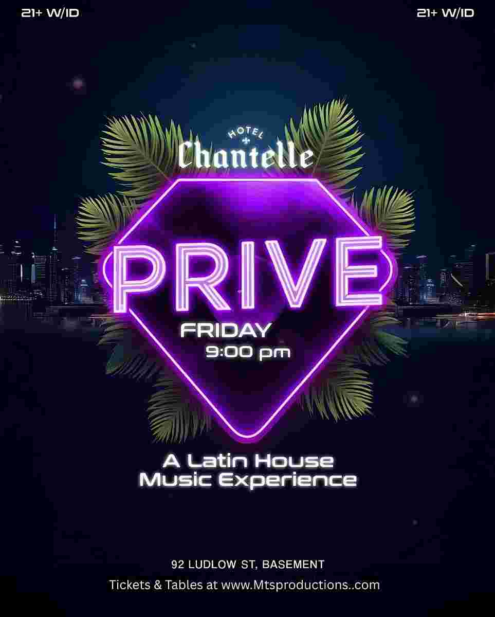 Hotel Chantelle NYC, located at 92 Ludlow St, New York, NY 10002, is a distinguished nightlife venue in the Lower East Side, recognized for its exceptional events. On Friday, August 8, 2025, the venue presents PRIVÉ Latin House Fridays, a leading latin tech house party nyc. Organized by MTS Productions, this event blends seductive Latin tech house beats with an intimate basement lounge atmosphere, offering a sophisticated celebration from 10:00 PM to 4:00 AM, appealing to both locals and visitors.