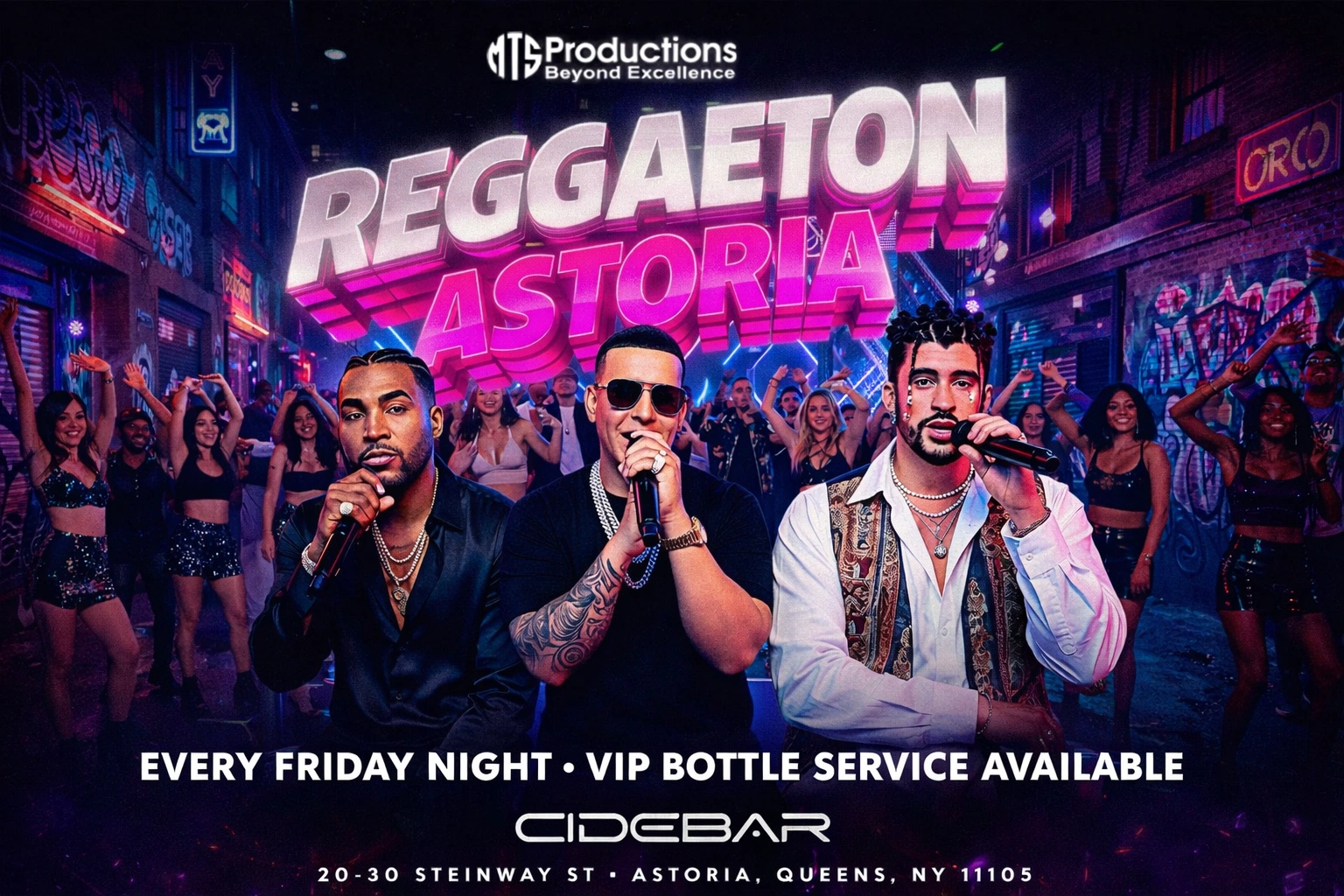 Located at 20-30 Steinway Street, Queens, NY 11105, Cidebar Nightclub transforms into a high-energy reggaeton party and Latin dance club experience. Expect packed dance floors, top DJs spinning reggaeton and Latin hits, and a crowd ready to move all night.
