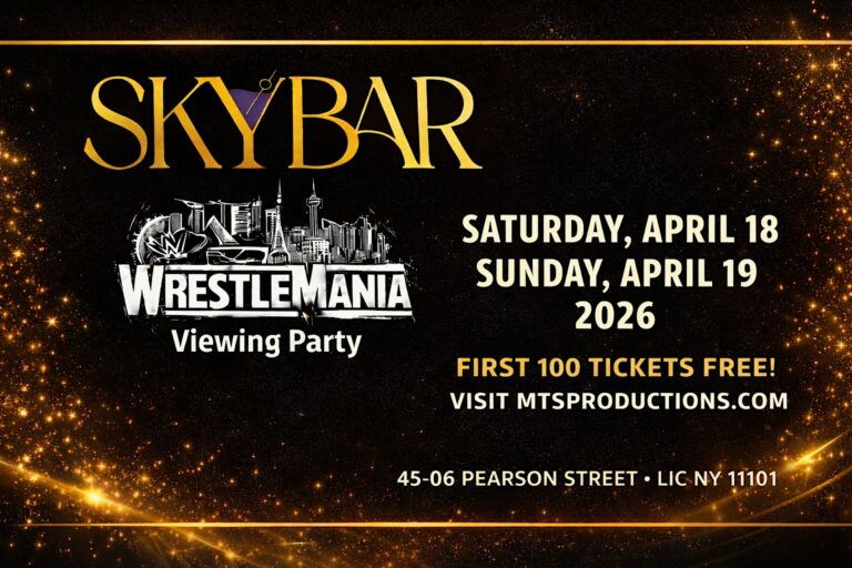 Watch WrestleMania 2026 live at Skybar Rooftop LIC. First 100 tickets free. Secure your NYC viewing party tickets today. WRESTLEMANIA WEEKEND AT SKYBAR 🥊🔥 Official NYC Rooftop Viewing Party Saturday, April 18 & Sunday, April 19, 2026 Looking for the…