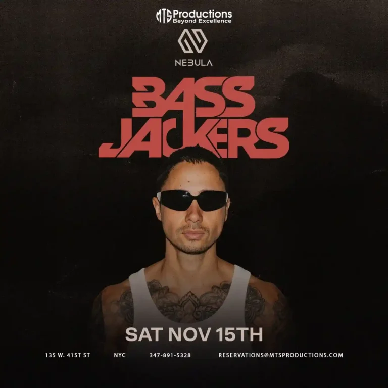 MTS Productions proudly presents Bassjackers @ Nebula NYC — a massive Saturday night party featuring the powerhouse Dutch duo known for their high-octane sound and unforgettable performances. Immerse yourself in Nebula’s interstellar nightclub experience, where space-inspired design, dynamic video panels,…