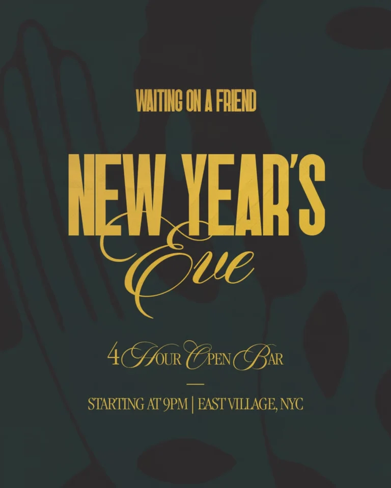 Get Tickets Now Celebrate New Year’s Eve 2026 at Waiting On A Friend, one of Manhattan’s favorite cocktail bars, with a 4-hour open bar and a festive midnight champagne toast. Known for its intimate yet vibrant atmosphere, Waiting On A…