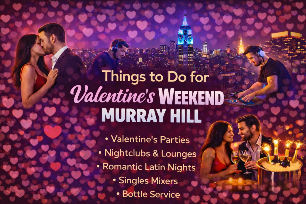 From dance clubs and Latin parties to singles mixers and VIP bottle service celebrations, Valentine’s Weekend parties in Murray Hill are built for couples, singles, birthday groups, and anyone ready to go out. Follow us on TikTok or Instagram for upcoming events or free giveaways.