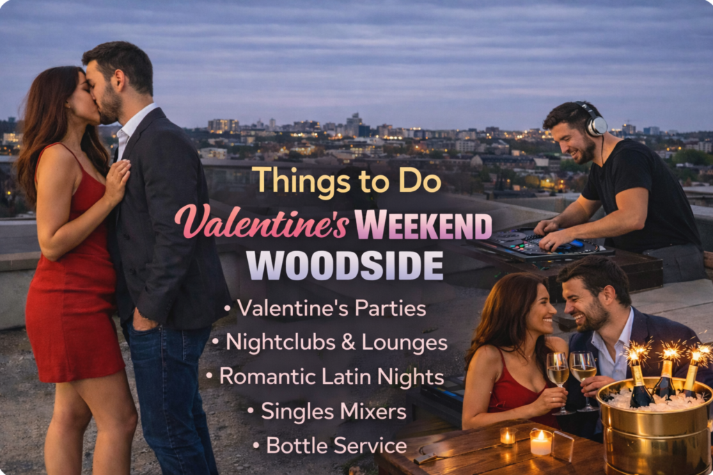 Valentine’s Weekend in Woodside, Queens brings together neighborhood charm and high-energy nightlife. Known for its strong Latin community and social party culture, Woodside turns Valentine’s Weekend into a multi-night celebration filled with dancing, DJs, and group-friendly vibes.