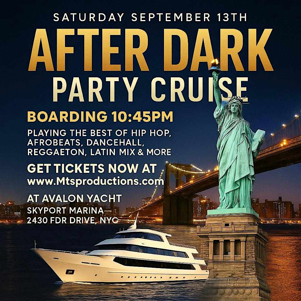 Avalon Yacht 2430 FDR Drive, New York, NY, New York, NY, United StatesParty on the water at the After Dark Party Cruise NYC on Saturday, September 13th, 2025 aboard Avalon Yacht. DJs spin Hip Hop and Afrobeats ???? After Dark Party Cruise NYC – Saturday, September 13th | Avalon Yacht Experience NYC Nightlife on the Water The city that never sleeps is calling! On Saturday, […]