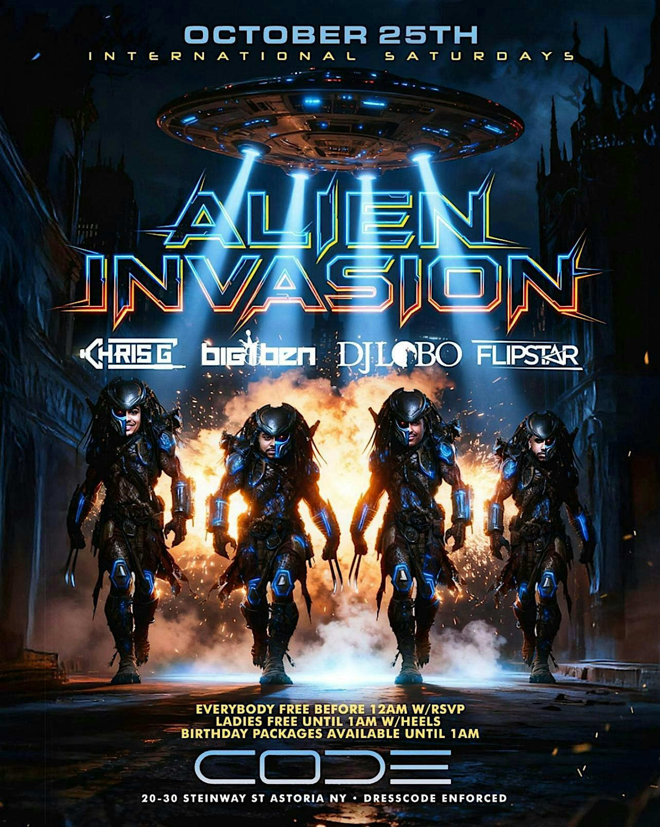 CODE Astoria 20-30 Steinway St, Astoria, NY, United StatesStep into another world at Alien Invasion at CODE Astoria on Saturday, Oct 25th! Everyone free & free hookah ‘til 12AM. Music by DJ LoboAlien Invasion at CODE Astoria 👽 | Astoria Queens NightlifeCelebrate Your Birthday, Bachelorette, Bachelor, Anniversary, Corporate, Divorce, Graduation & More — for FREE!📅 Saturday, October 25th🛸 ALIEN INVASION – A Night […]