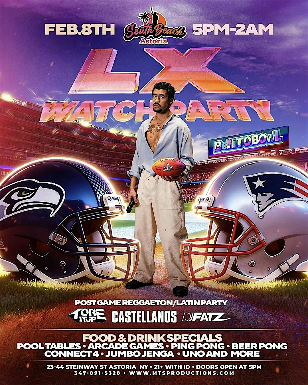 Bad Bunny Super Bowl Watch Party + Afterparty in Astoria NYC